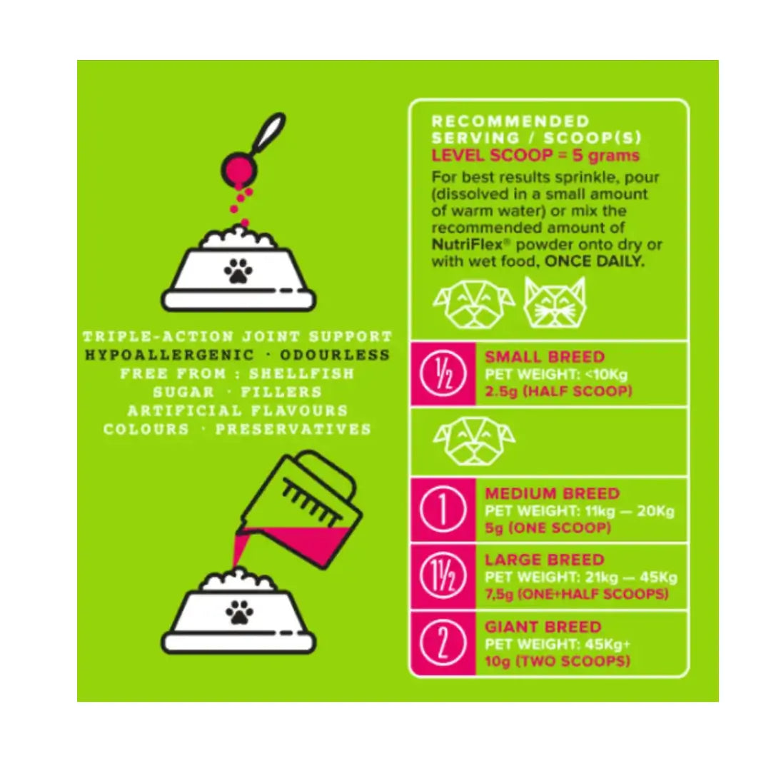 Support your pet’s mobility, bone strength and long-term wellbeing with NutriFlex Collagen — a clean, natural, multi-collagen supplement designed to nourish joints, protect bones, and keep your dog or cat active, comfortable, and thriving at every age.